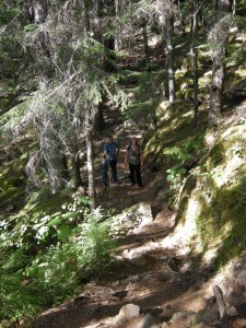 We hiked about 1-2km of the historic Chilkoot Trail. During the Gold Rush, the prospectors would hike this pass (shorter in distance, higher in elevation, shorter season) or the White Pass (longer season) with approximately 2 tons of gear to survive the journey. They would have to make multiple trips to get all 2 tons of gear through.
