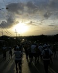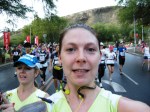 km’s 10-20: my pace, nutrition, and hydration have been spot-on. I still feel great.Around the 10k mark, we run up Diamond Head (local crater)…Compared to some of the hills at home (Edworthy, Blood & Guts, 69th Street), this hill is EASY! Sue is still running with me! It makes a HUGE difference to have a running buddy. The sun is starting to rise. Much to our surprise, the crowd is still massive… there has been no break in the flow of people.the entire race, we have been passing people. Approximately 13k, we see the first place marathoners heading in the opposite direction! We are only at km 13 or so, and they are around km25-30!!