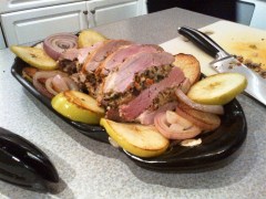on saturday, i went for a light afternoon run. on saturday evening, our good friends steph & brendan came over and I made them dinner. we had pork tenderloin roast with roasted vegetables. steph was in charge of dessert and brought some delicious pastries from her favorite bakery in canmore. i enjoyed a slice of napoleon (sp?), which was layers of flaky pastry and cream, topped off with a sweet icing. mmmm.