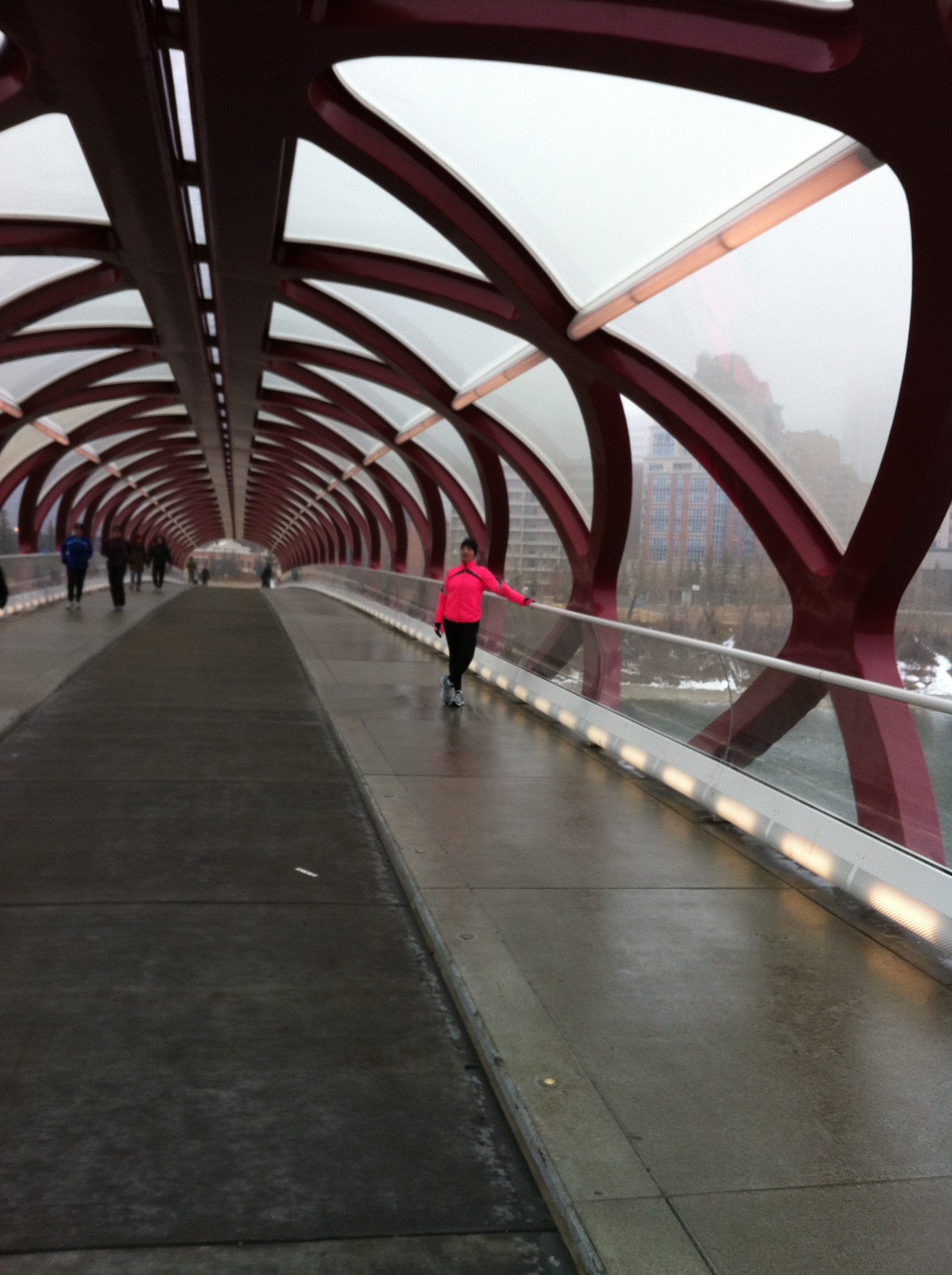 Sunday was Afton’s last “long run”. We knocked off 11k in the strangely foggy morning around Eau Claire, and got to test out the new Peace Bridge – twice!