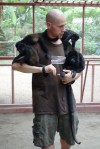 I took a lot of photos – but mainly of feeding time in the afternoon. Jamie and I never worked together, so it was tough to get pics of him! He couldn’t bring a camera with him most times because the monkeys would try to steal it and break it… so here we have photos taken by me, from outside the monkey enclosure – through the glass.